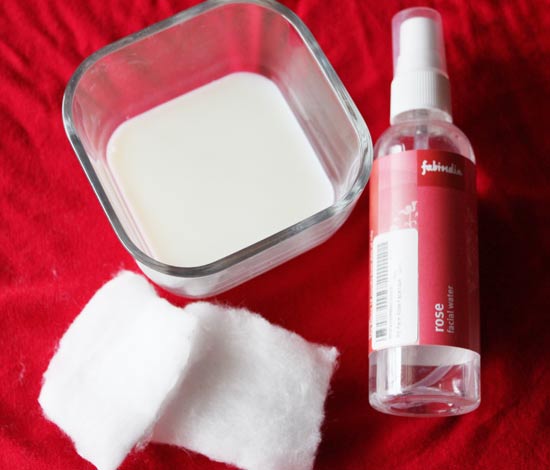 குளிர்ந்த பால் மற்றும் ரோஸ் வாட்டர் இரண்டையும் சம அளவில் எடுத்து கலந்து கொள்ளவும். இப்போது இந்த கலவையில் இரண்டு பஞ்சு உருண்டைகளை ஊற வைக்கவும். அதன் பிறகு, அவற்றை உங்கள் கண்களுக்கு மே வைக்கவும். கரு வளையம் முழுவதுமாக மறையும் படி இதனை கண்களின் மேலே வைக்கவும். 20 நிமிடங்கள் அப்படியே விட்டுவிட்டு, பின்னர் குளிர்ந்த நீரில் கழுவவும். கருவளையங்களை நீக்க ரோஸ்வாட்டரை பாலுடன் கலந்து வாரத்திற்கு 3 முறை இந்த முறையை செய்து வரவும்.
